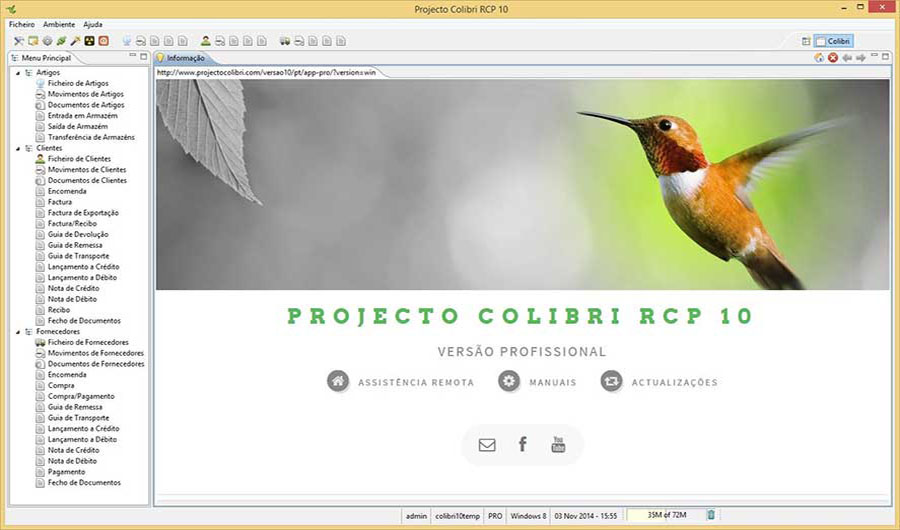 O Projecto Colibri é um Software de Gestão Comercial multi-plataforma que aborda as principais necessidades da área comercial de uma pequena e média empresa, fazendo o controlo compras, vendas, stocks e contas correntes