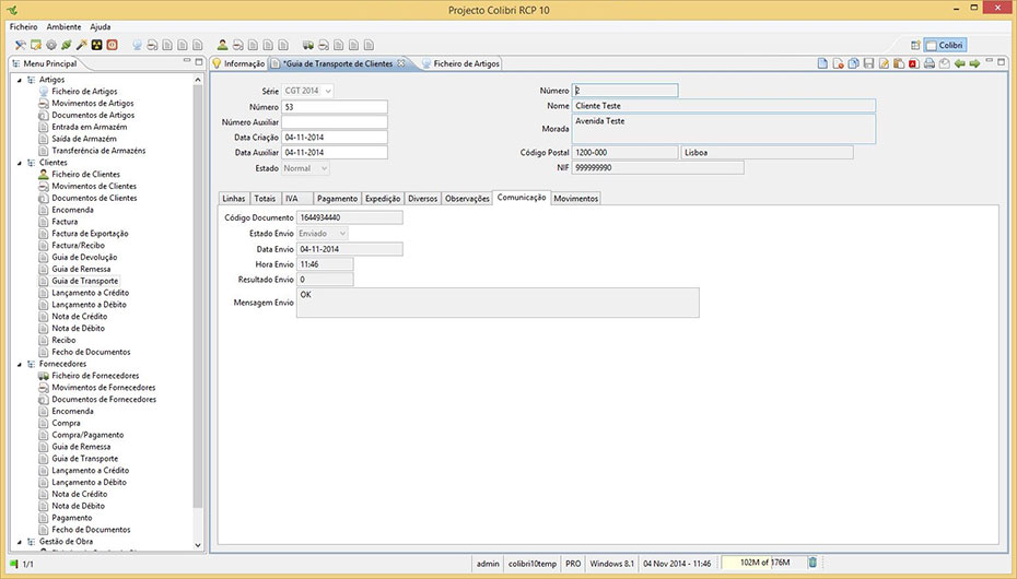 - Testes de desenvolvimento efectuados sobre todas as plataformas suportadas (específicamente: Windows XP/7/8, Linux Ubuntu e Mac OS X-Lion.